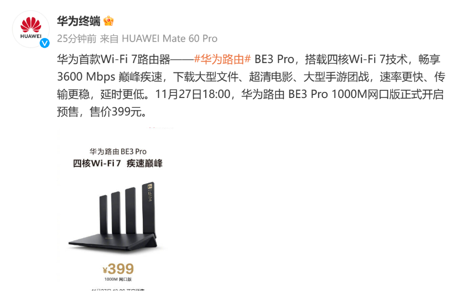 目前,有关这款路由器的其它规格所知不多,但既然华为表示“给你一个更换路由的理由”,而网络设备又是华为的强项,想必各方面表现不会差。