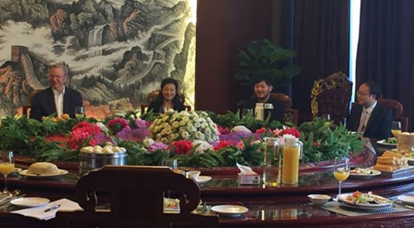 施密特的早餐会,是施密特在中国的每年一度的会议。每年,谷歌都会邀请在这一年内谷歌关注的领域内出现的极有潜力的十家创新企业的代表在北京与施密特共进早餐,今年是第四届。图为11月2日施密特早餐会情景。