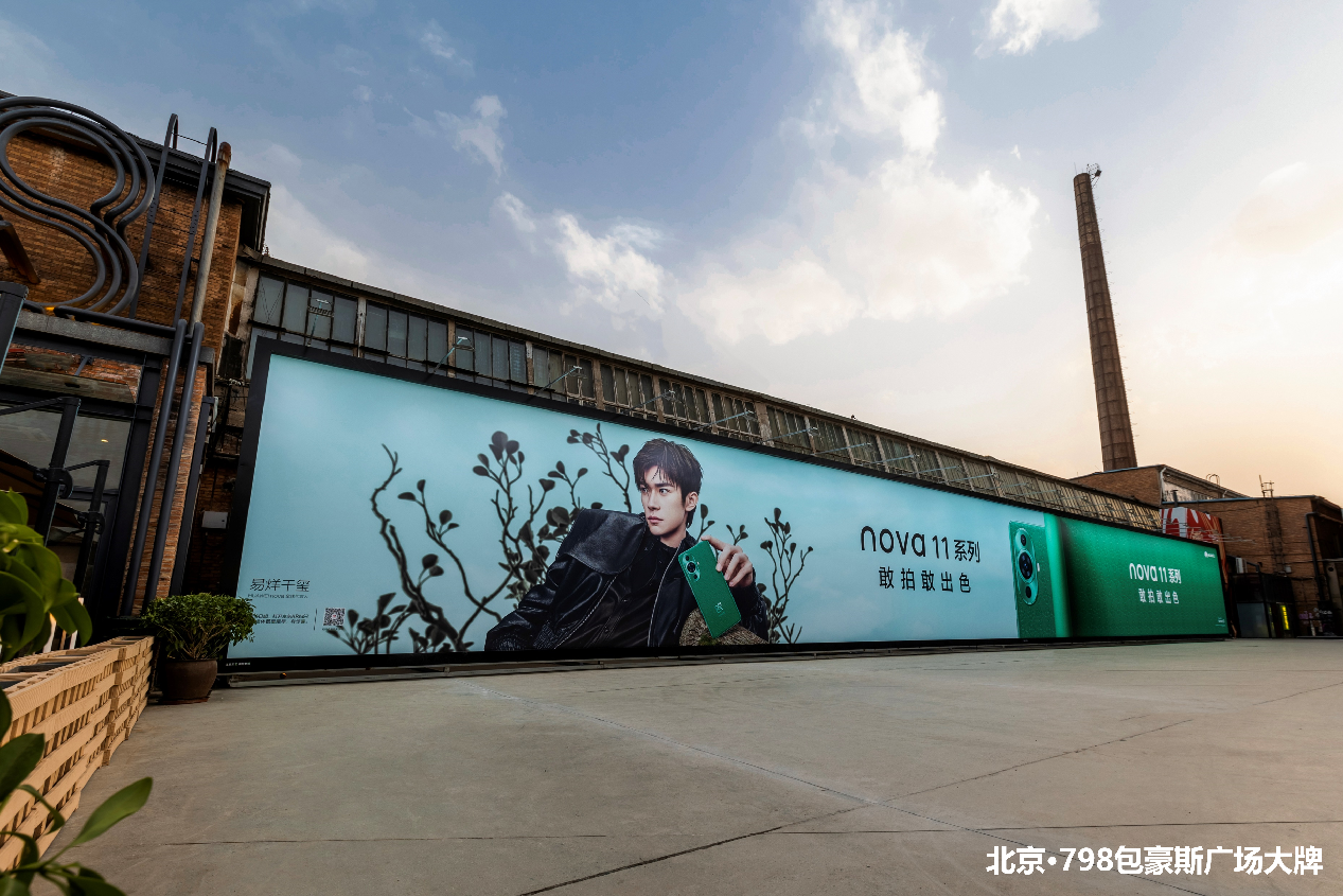 非常值得一提的是,北京的快闪建筑上不仅会有绿色monogram元素,还有易烊千玺手持华为nova 11系列手机的巨幅画报,北京当地的粉丝、用户都可以前往与易烊千玺同框拍“合影”,一起秀出时尚本色!
