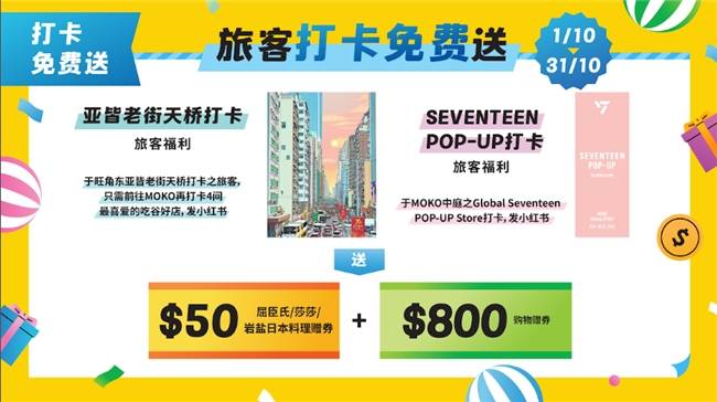 而随着“SEVENTEEN WORLD TOUR [NEW_]IN HONG KONG”的举办,“CARATIA克拉境”线下体验活动也将于香港开启,主题电车、灯光秀、MINITEEN展等一大波粉丝必打卡项目亮相香港。而MOKO也即将迎来SEVENTEEN香港快闪店的空降,于9月18日至10月22日期间限时开放,店内不仅有演唱会相关产品及新系列周边商品,还设有 4个拍照区和 1 个展览区,为粉丝们提供沉浸式追星体验。此外,MOKO还为从内地来香港看演唱会的粉丝朋友们提供小红书快闪店打卡有奖活动,于小红书完成指定打卡步骤及出示有效证件,即有机会获得高达HK$850奖赏!快闪现场买满指定金额,即送SEVENTEEN锁匙扣/文件夹(款式随机),CARATIA克拉境必抢!