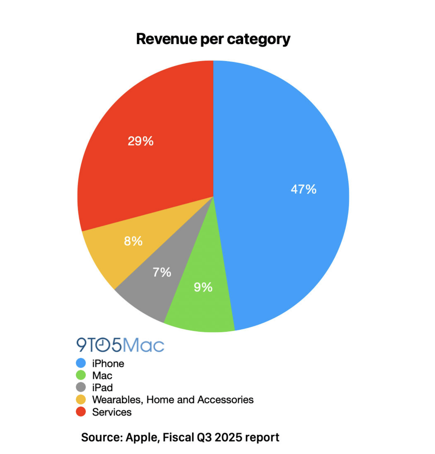 苹果今年第三财季总收入 940 亿美元,服务收入 274 亿美元,实现两位数增长的同时,占比更是达到 29%,「遥遥领先」iPhone 之外的其它所有类别收入来源。