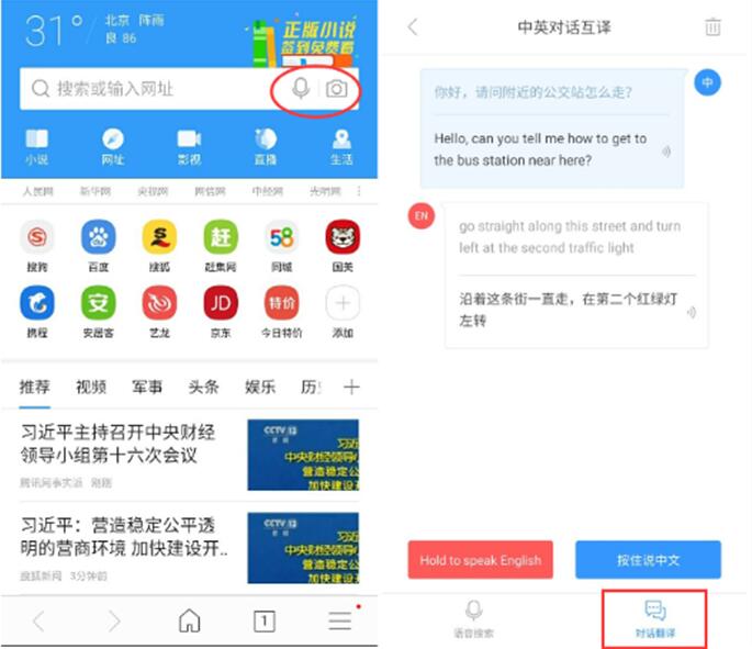 语言不通,是老人们出境游最大的难题。有些人是完全不懂英语,也有些是不太好意思将自己蹩脚的中式英语说出口,所以在国外遇到问题只能急的团团转。现在有了搜狗手机浏览器,遇到问题时点击搜索栏右侧的“话筒”然后对着手机说出你想翻译的话,搜狗手机浏览器就会翻译成对方的语言并说给外国友人听,中英互译快易准,你一句来我一句,沟通交流就这样轻而易举的完成。