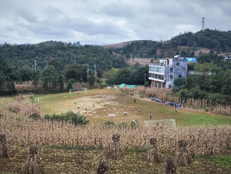 学校里另一处略为平整的地块,是足球场。这里原本是一片乱石遍布的玉米地,欧阳谦带着同学们用锄头、畚箕等农具,花了一个多月时间,硬是从玉米地里“抠”出了一块足球场。