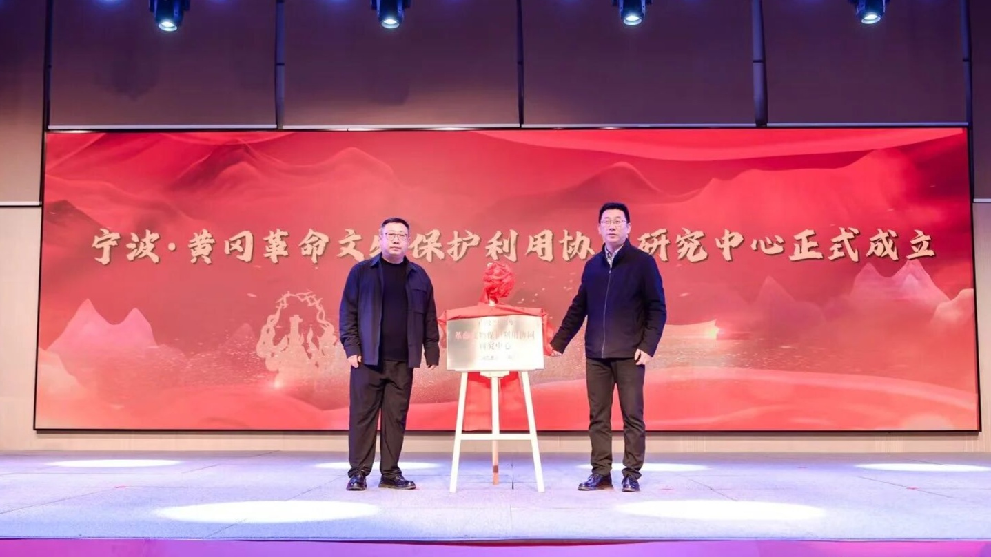 现场举行宁波·黄冈革命文物保护利用协同研究中心成立揭牌仪式,中心成立后将推动两地文保机构、高校及科研单位深化合作,为革命文物普查、研究、保护、利用提供智力支撑。