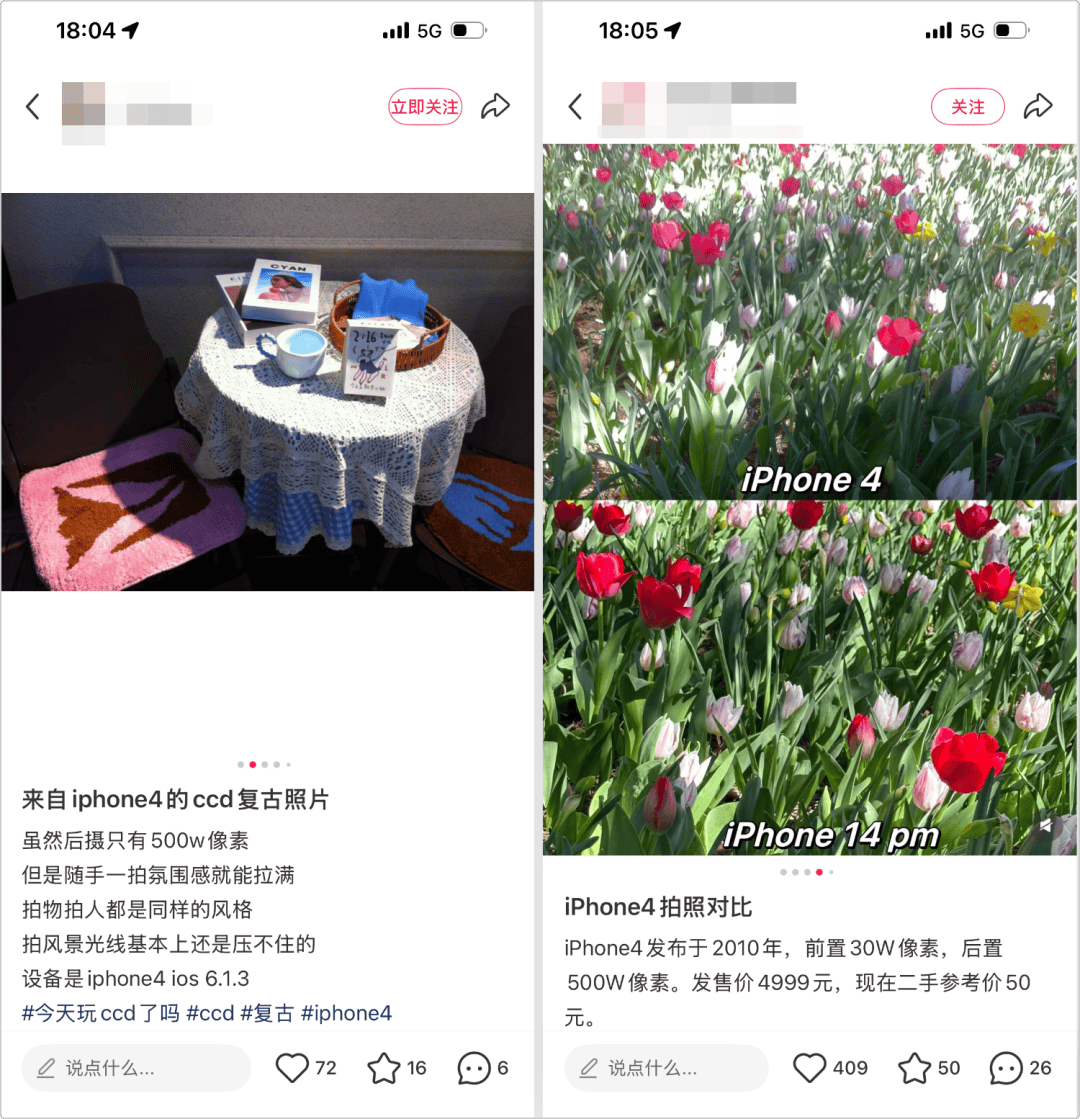 具体来说,在各大平台的评论区,iPhone 4 被认为是可以代替 ccd 复古相机的拍照神器