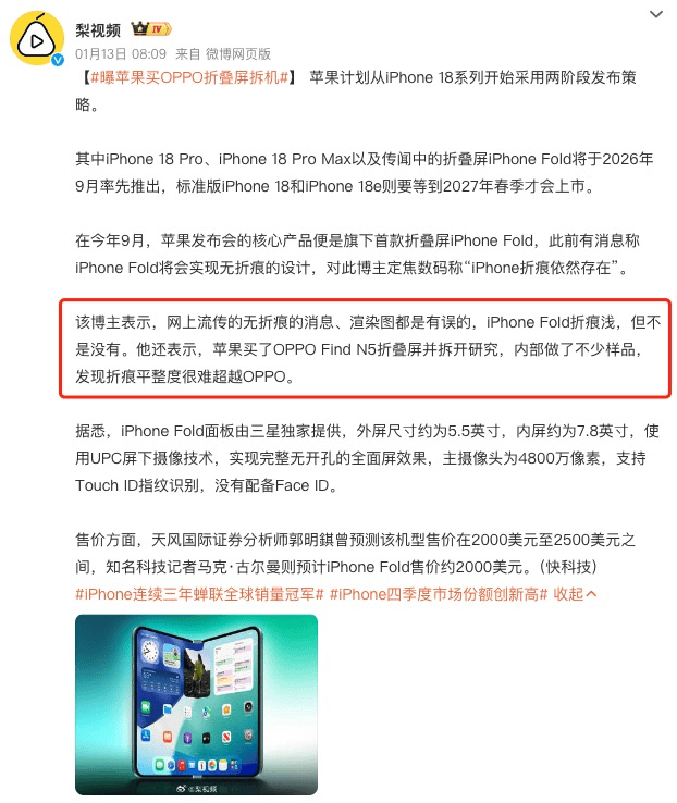 更耐人寻味的是,爆料指出苹果最终做出了一个“真香”的决定——照单全收。OPPO折叠屏供应链的核心铰链等精密件全被苹果折叠采纳,甚至和接下来的OPPO Find N6高度重合。这意味着连苹果都选择了直接沿用OPPO验证过的成熟路径。