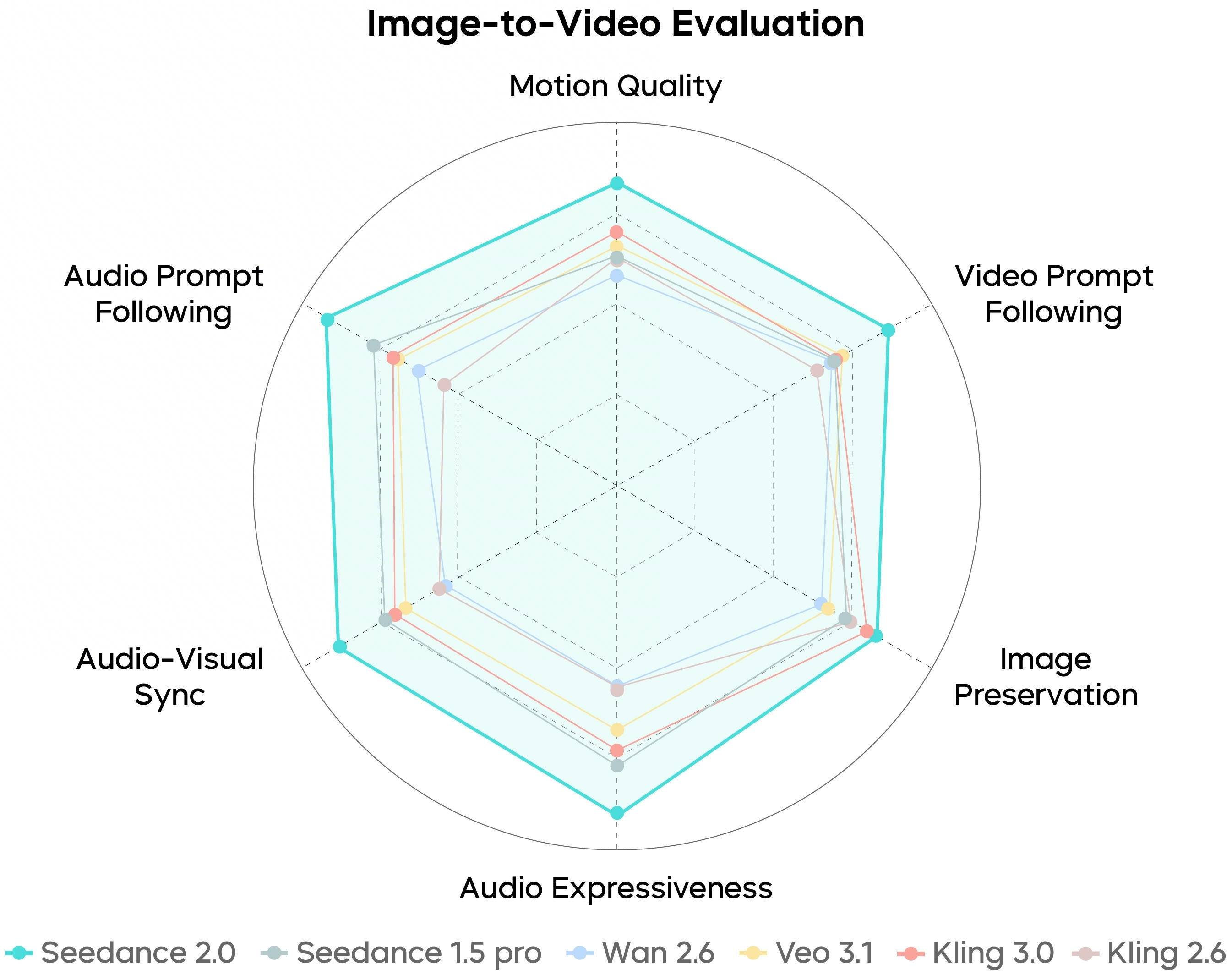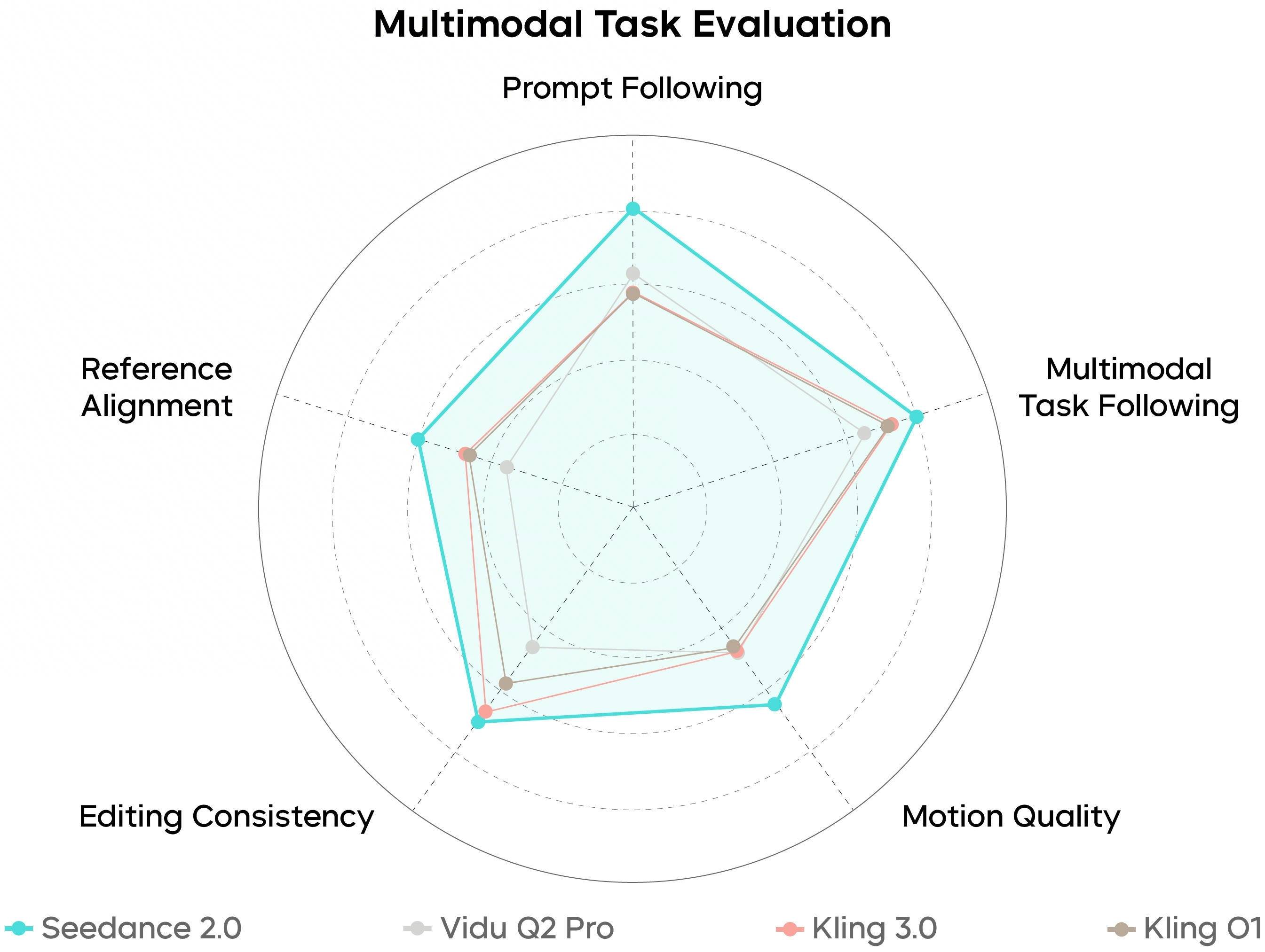 首先来看看Seedance 2.0评测情况,字节联合影视专家构建多模态评测体系,聚焦参考生成、指令响应、运动稳定、镜头语言及音画协同等维度进行了模型评测。