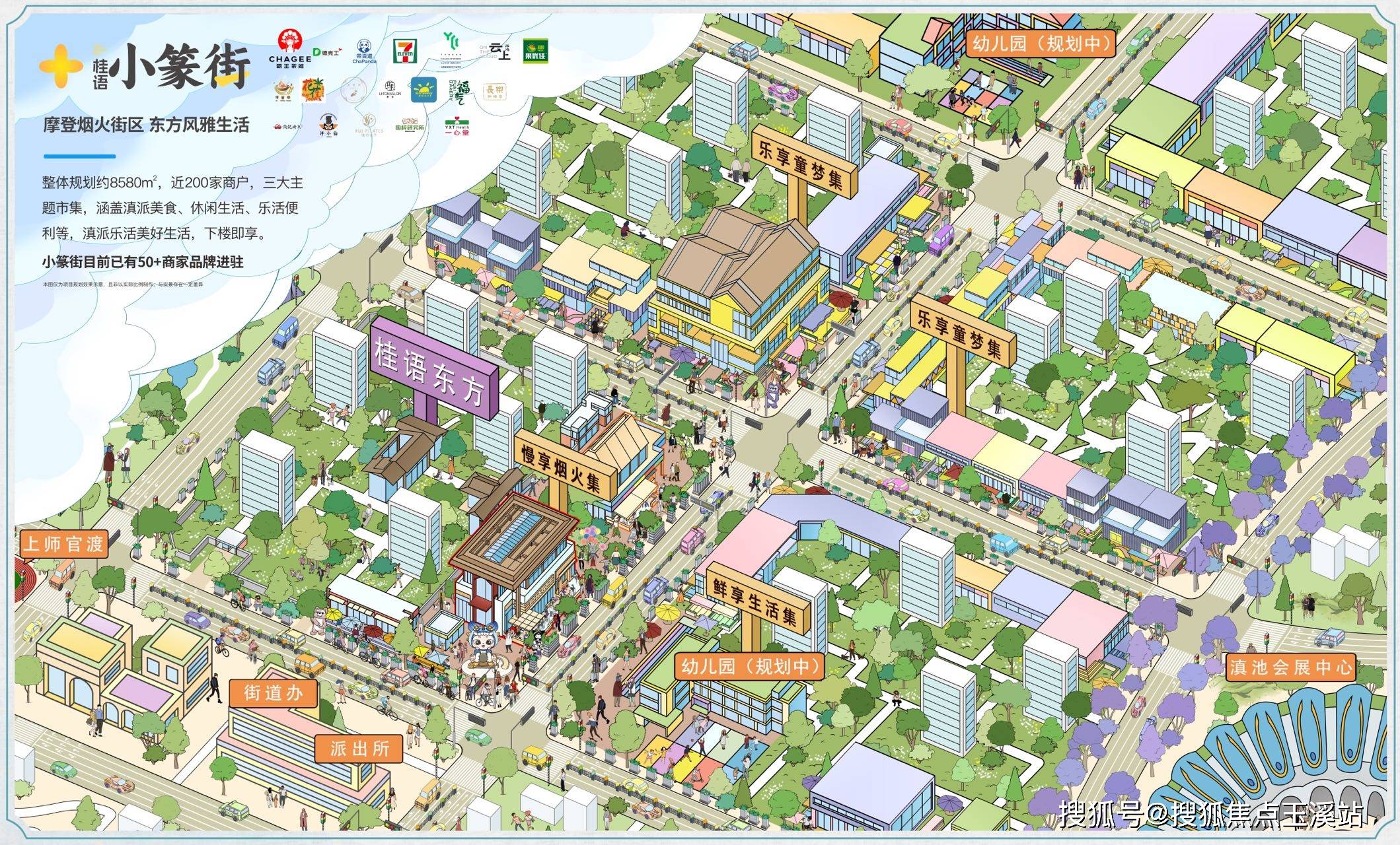 组团中间一条中轴街区贯穿南北,错落的建筑分布两侧,置身其中于街道漫步,这是与以往小区底商不同的存在,4 个地块不再是被围墙封起的“孤岛”,以独立社区商业告别底商的纷扰喧嚣,又营造出“让生活转起来的昆明小街”,并与更广泛的城市实现交融,这种独立商业街区的规划是源自于万科上海“未来城市理想单元”的最新产品研发成果。桂语小篆街体量为8580㎡,其中新22为2980㎡、新20规划2600㎡、A1/A2规划3000㎡。其中餐饮占比为(滇派美食51%;休闲生活18%,乐活便利31%)