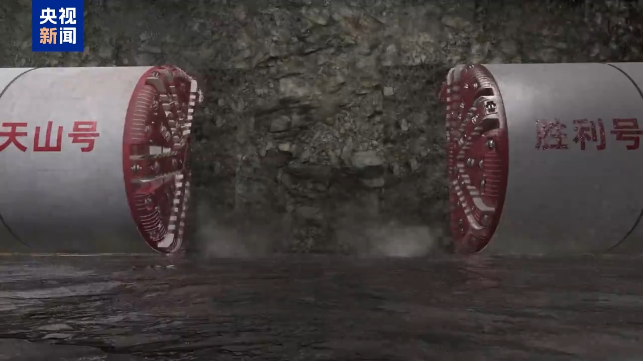 再看工具。两台“吞石巨兽”——“天山号”和“胜利号”硬岩掘进机是为打通天山量身定做的。刀盘直径8.43米,接近3层楼高度。工作时,这对“双胞胎”从中导洞的两端朝中间“双向奔赴”。打通天山可不容易,不仅隧道长度破纪录,还要穿越16条地质断裂带,这就如同在豆腐脑里雕花。特别是在穿越F6地质带时,36天的隧道涌水量,相当于近30个标准游泳池的水量,掘进速度一下就踩了急刹车,从每天35米锐减到每天只能走3到5米。